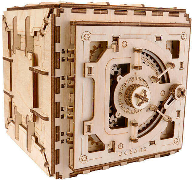 Az UGEARS világszerte sikeres, újszerű, prémium minőségű fa modelljei egy közösségi kampányból (Kickstarter) nőtte ki magát és futott be irigylésre méltó utat. Szemkápráztató, önmeghajtású famodelljei ragasztó nélkül összeszerelhetők. A termékek egyszerre tekinthetőek fajátéknak, modellnek és művészeti alkotásnak, melyek összerakás után szoborként akár méltó díszei lehetnek otthonunknak. A széf modell összeállítása is lebilincselő, de a zárkombináció beállítása és a széf kinyitása egyszerűen fenomenális. Egy ötletes modell, amivel valódian el lehet játszani egy-egy széf feltörős játékot. Alkatrészek száma: 71 Az összeszerelés becsült ideje: 2-3 óra