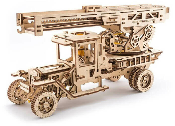 Az UGEARS világszerte sikeres, újszerű, prémium minőségű fa modelljei egy közösségi kampányból (Kickstarter) nőtték ki magukat és futottak be irigylésre méltó utat. Szemkápráztató, önmeghajtású famodelljei ragasztó nélkül összeszerelhetők. A termékek egyszerre tekinthetőek fajátéknak, modellnek és művészeti alkotásnak, melyek összerakás után szoborként akár méltó díszei lehetnek otthonunknak. A tűzoltóautó modell a legújabb konstrukciója a Ugearsnak, mely kormányozható első kerékkel, állítható és kihúzható létrával teszi még lenyűgözőbb élményét a modellezésnek. A mű részletgazdagsága és kidolgozása könnyedén magával ragad mindenkit. Koránt sem kezdőknek való modell, azonban a várható eredmény és élmény megéri a fáradtságot. Alkatrészek száma: 537 Az összeszerelés becsült ideje: 14-16 óra
